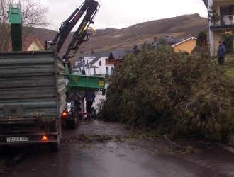 Wir fällen, wie auch auf den Bildern zu sehen, Bäume in allen Lagen. Ob mit Kran, Baumkletterer oder einfach mit der Winde. Es gab noch keinen Baum den wir nicht fällen konnten.